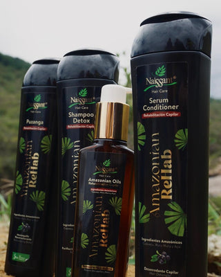 Complementa tu rutina con el Shampoo Détox, el Serum Conditioner y el Amazonian Oils. (Kit Amazonian Rehab)